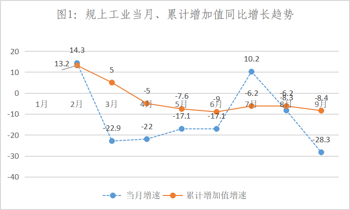 经自治区统计局审定,1-9月全县19家规模以上工业企业增加值同比下降8.4%,降幅较1-8月扩大2.2个百分点;9月当月增加值同比下降28.3%,环比下降9%,单月增速创年内新低,对累计增速形成显著拖累。