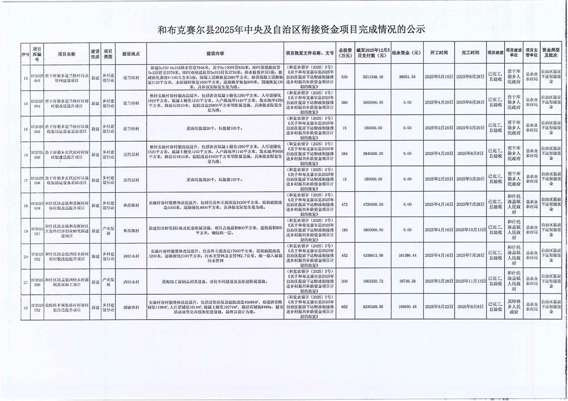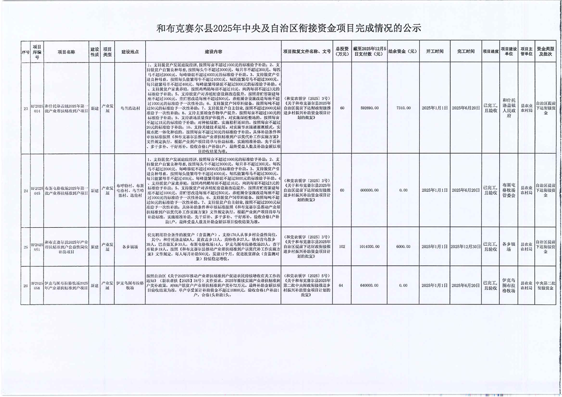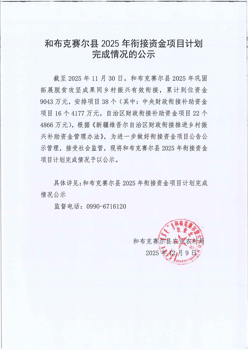和布克赛尔县2025年衔接资金项目计划完成情况的公示