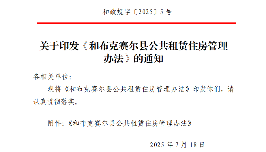 政策解读|关于印发《和布克赛尔县公共租赁住房管理办法》的通知