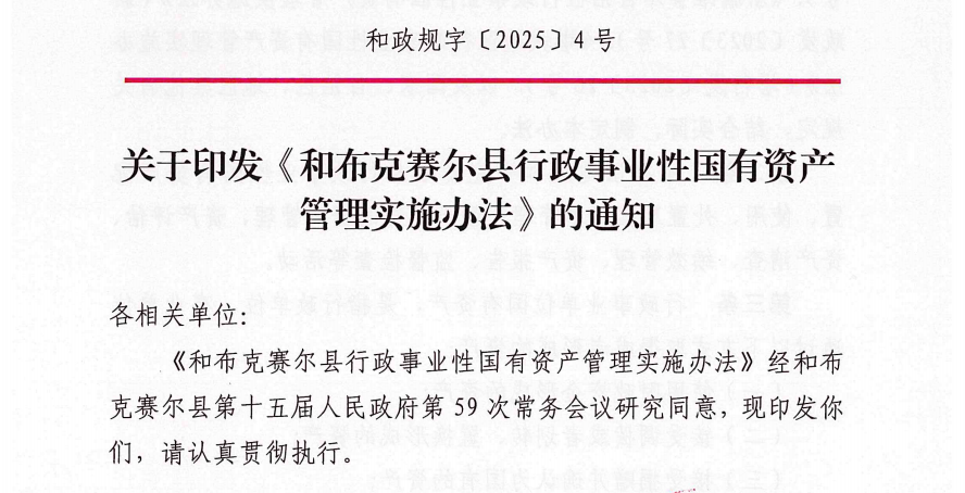 关于《和布克赛尔县行政事业性国有资产管理实施办法》 政策解读