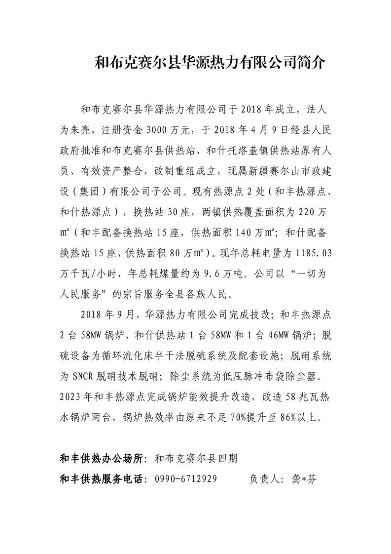 【供热信息】和布克赛尔县华源热力有限公司简介(办公地点、服务电话、热线)