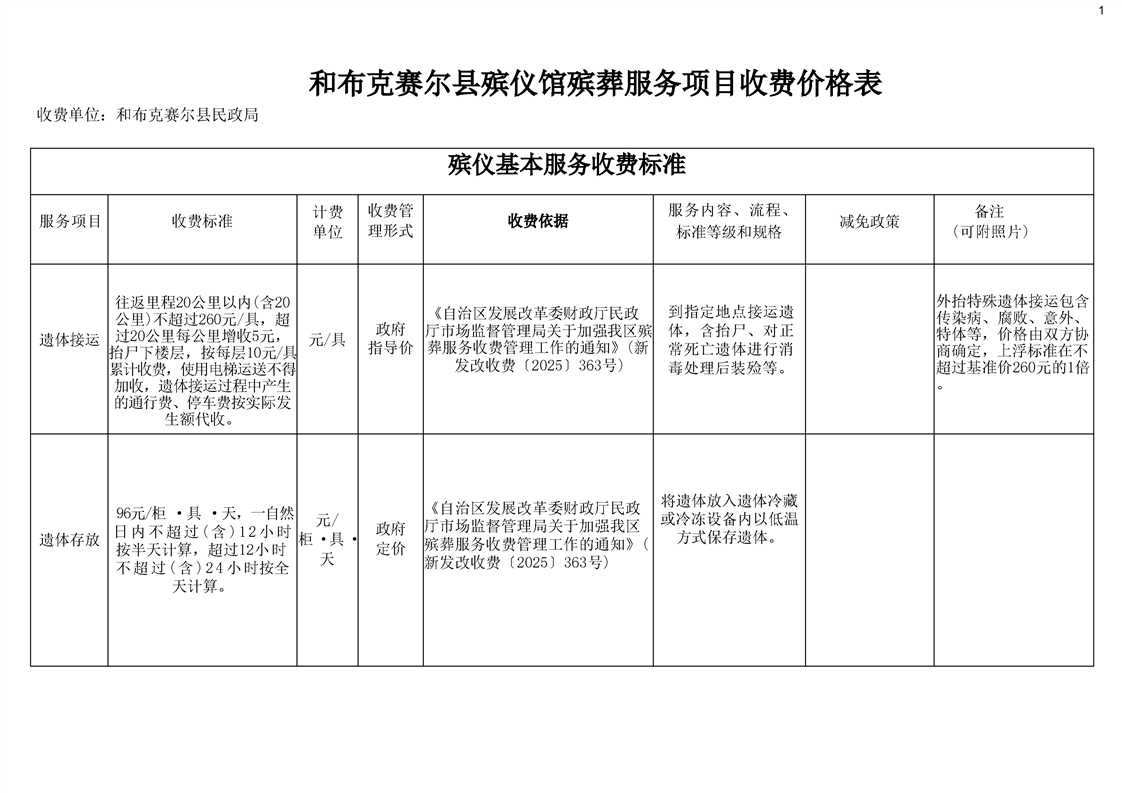 和布克赛尔县殡葬服务机构收费网络集中公示