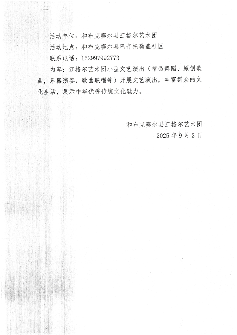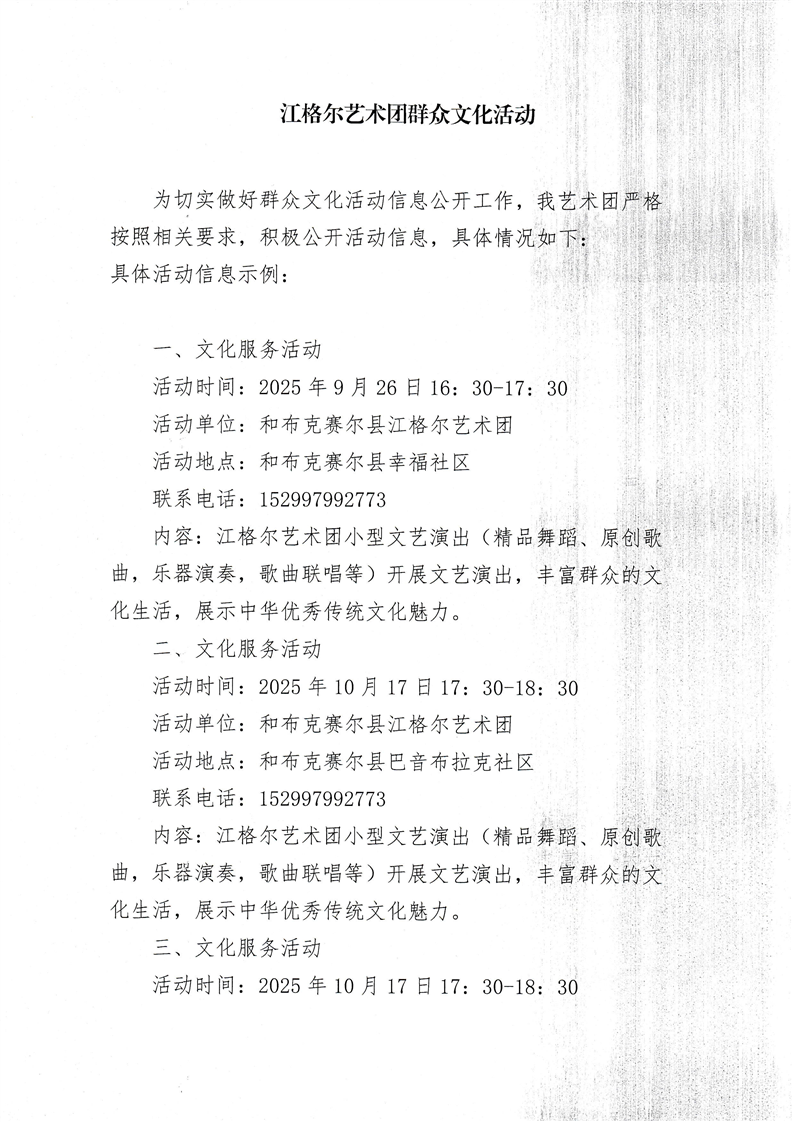 群众文化活动 | 和布克赛尔县江格尔艺术团群众文化活动公告
