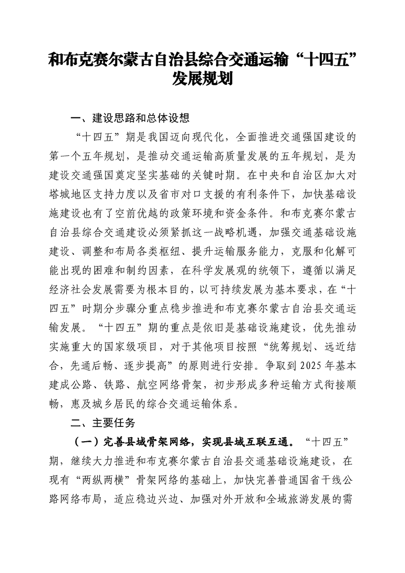 和布克赛尔蒙古自治县综合交通运输“十四五”发展规划