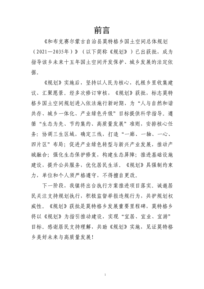 和布克赛尔蒙古自治县莫特格乡国土空间总体规划(2021-2035年)批后公告