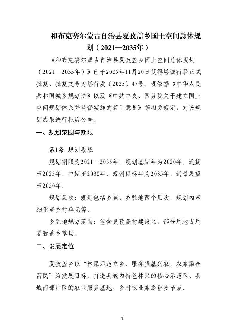 和布克赛尔蒙古自治县夏孜盖乡国土空间总体规划(2021-2035年)批后公告