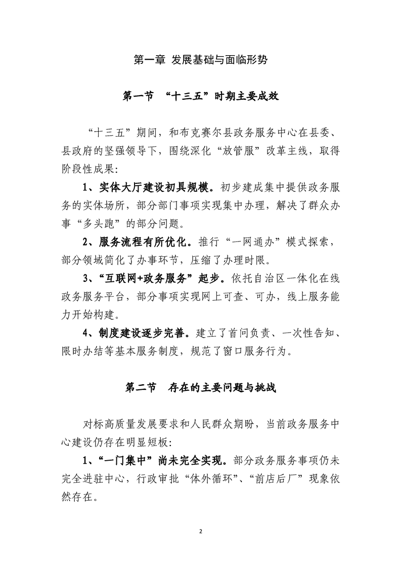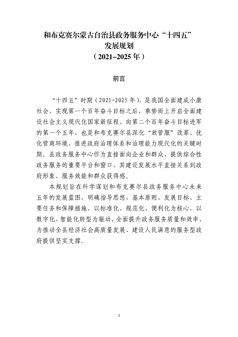 和布克赛尔蒙古自治县政务服务中心“十四五”发展规划