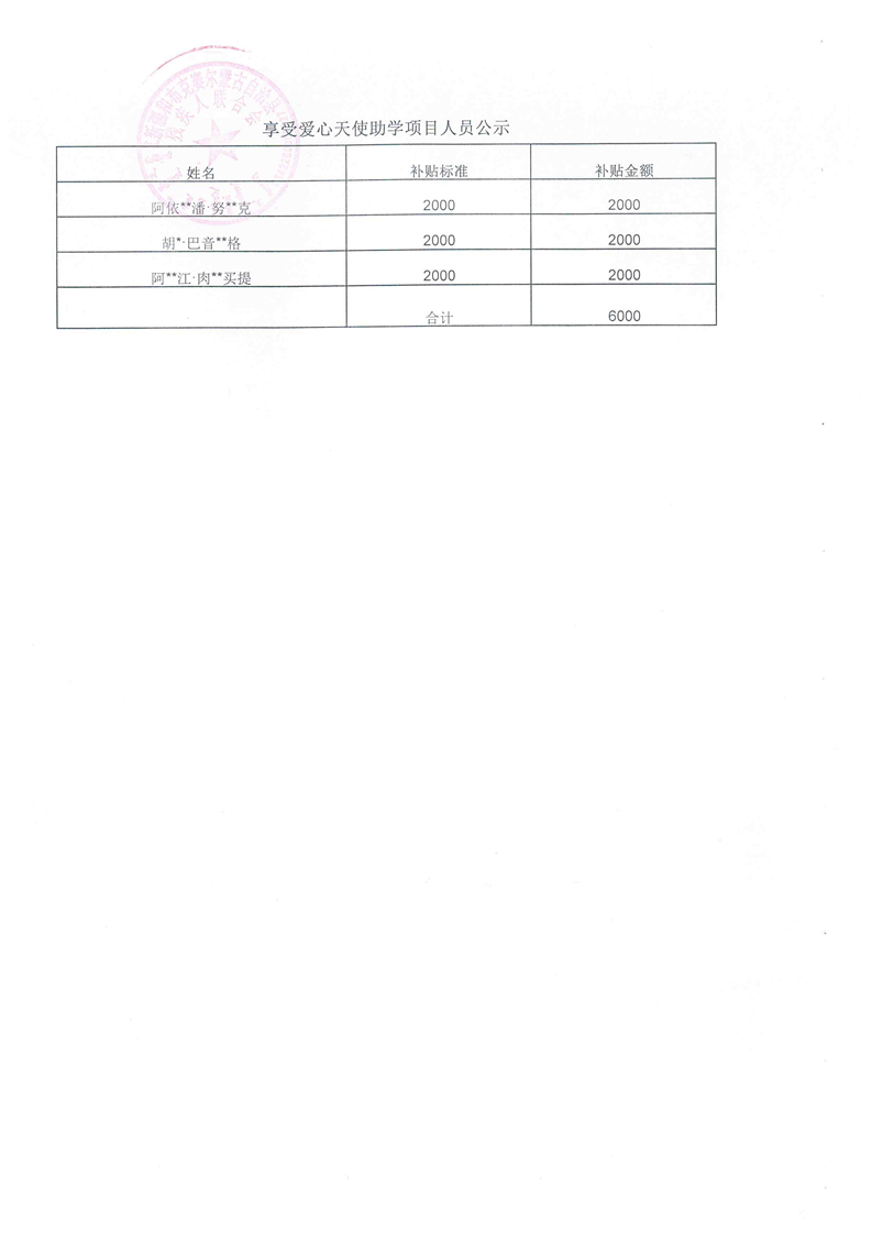 享受爱心天使助学项目人员公示