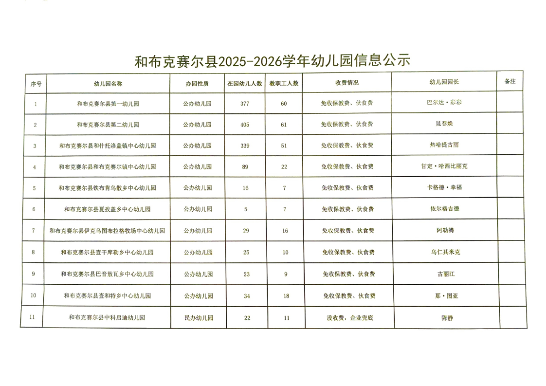 和布克赛尔县2025-2026学年幼儿园信息公示