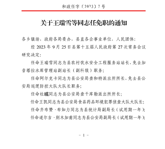关于王瑞雪等同志任免职的通知