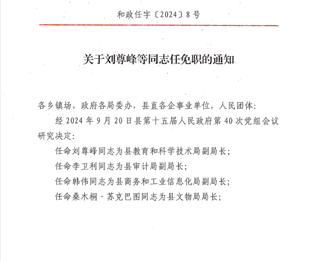 关于刘尊峰等同志任免职的通知
