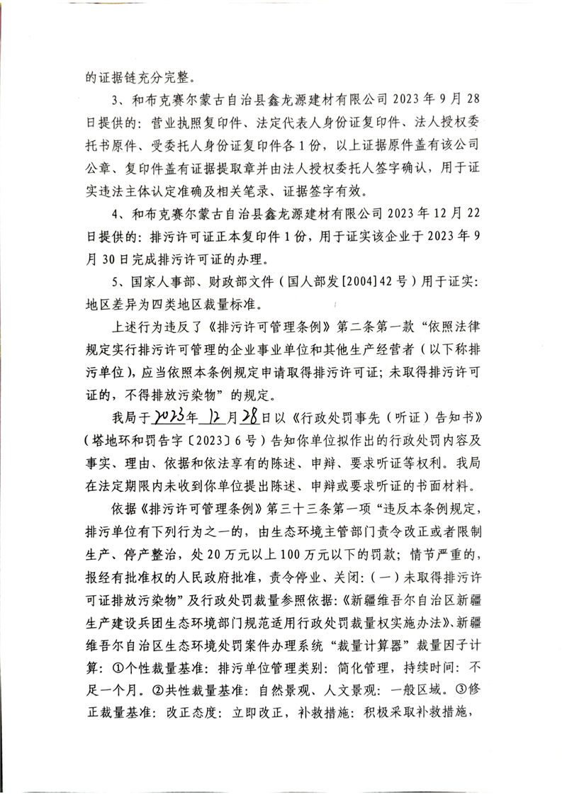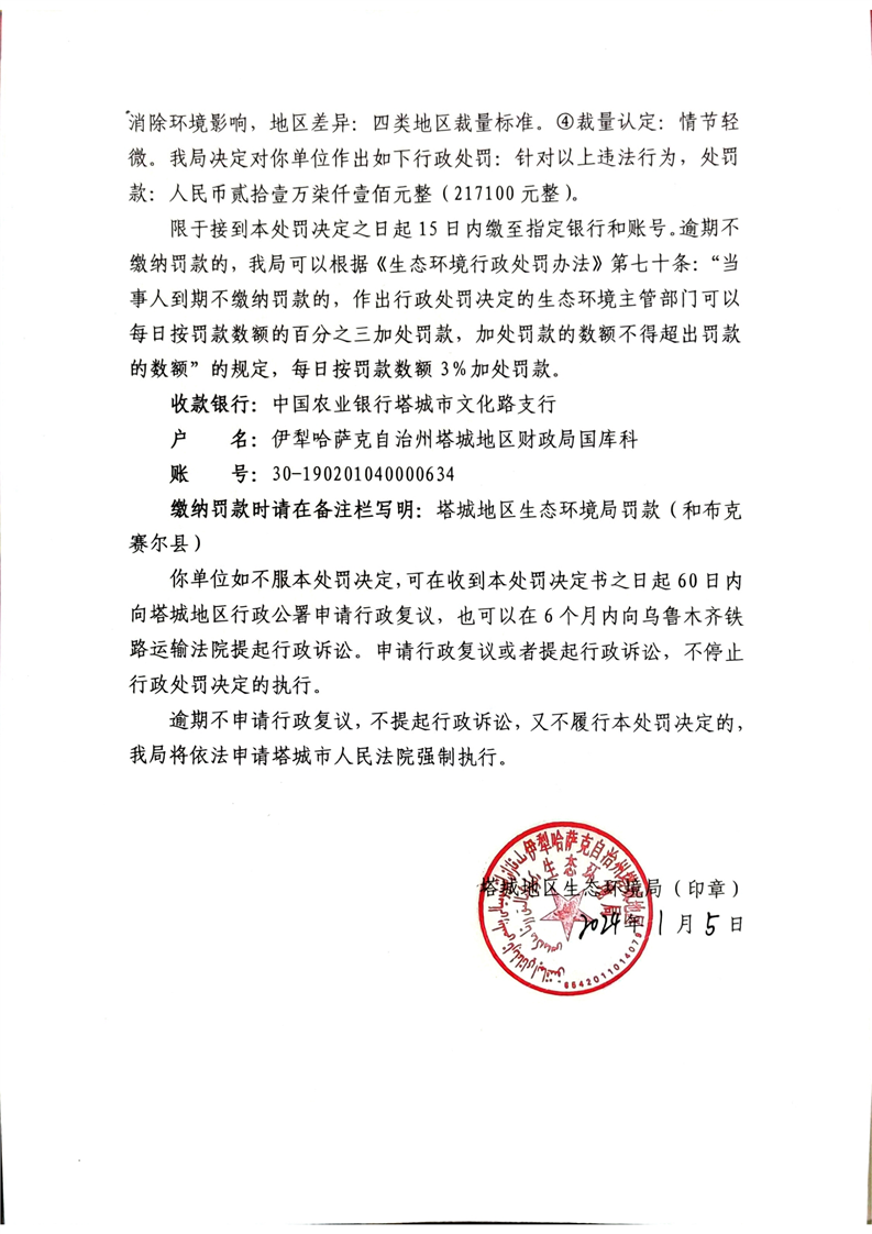(塔地环和罚字【2023】6号)塔城地区生态环境局行政处罚决定书