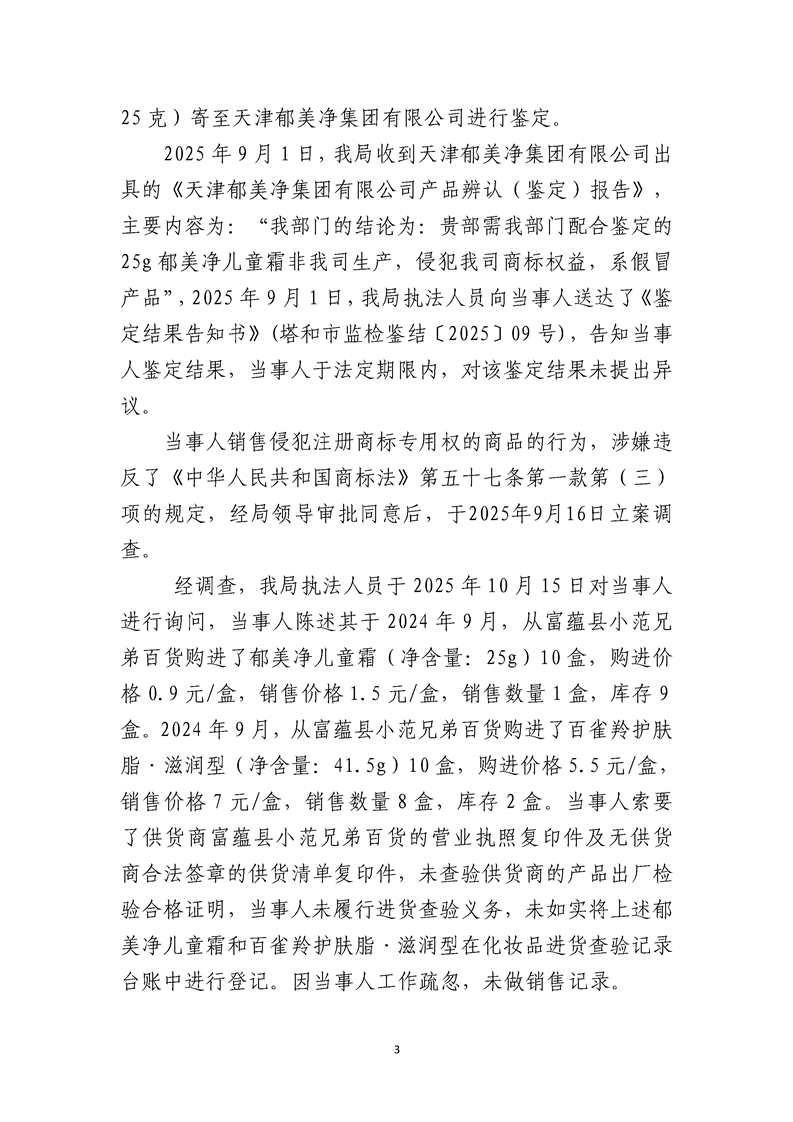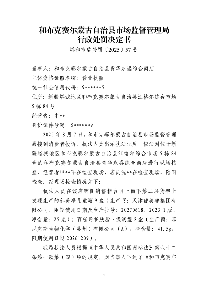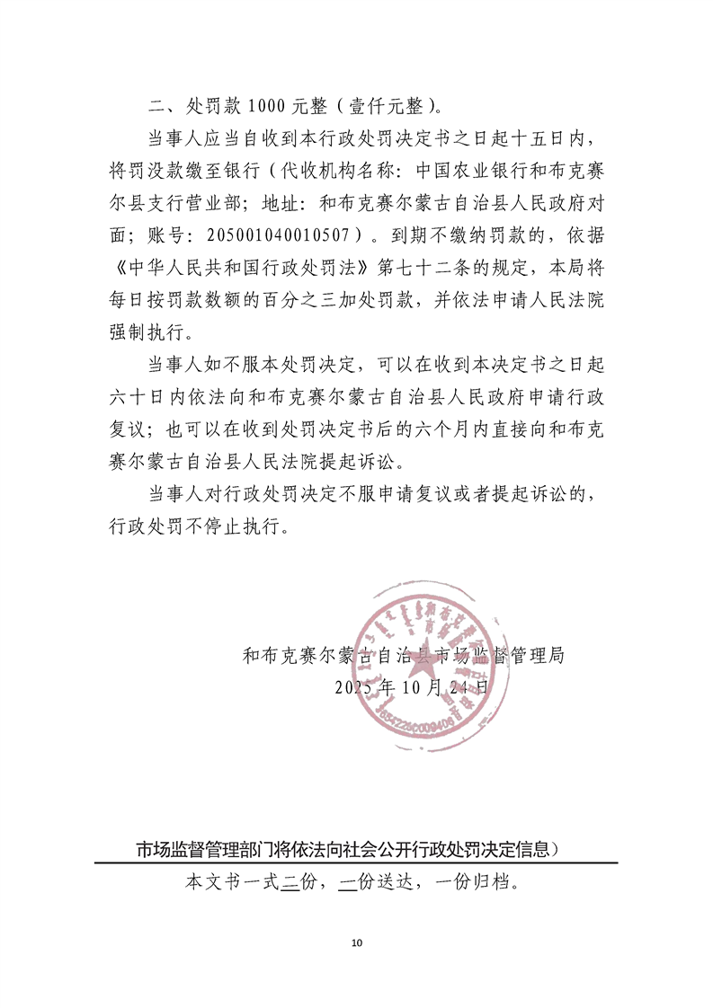和布克赛尔县市场监督管理局行政处罚决定书 塔和市监处罚[2025]57号