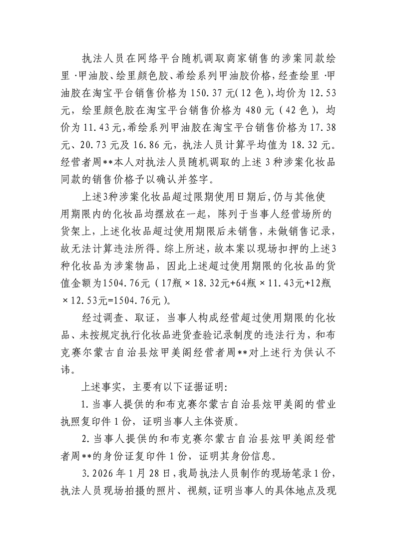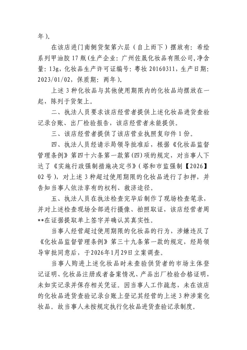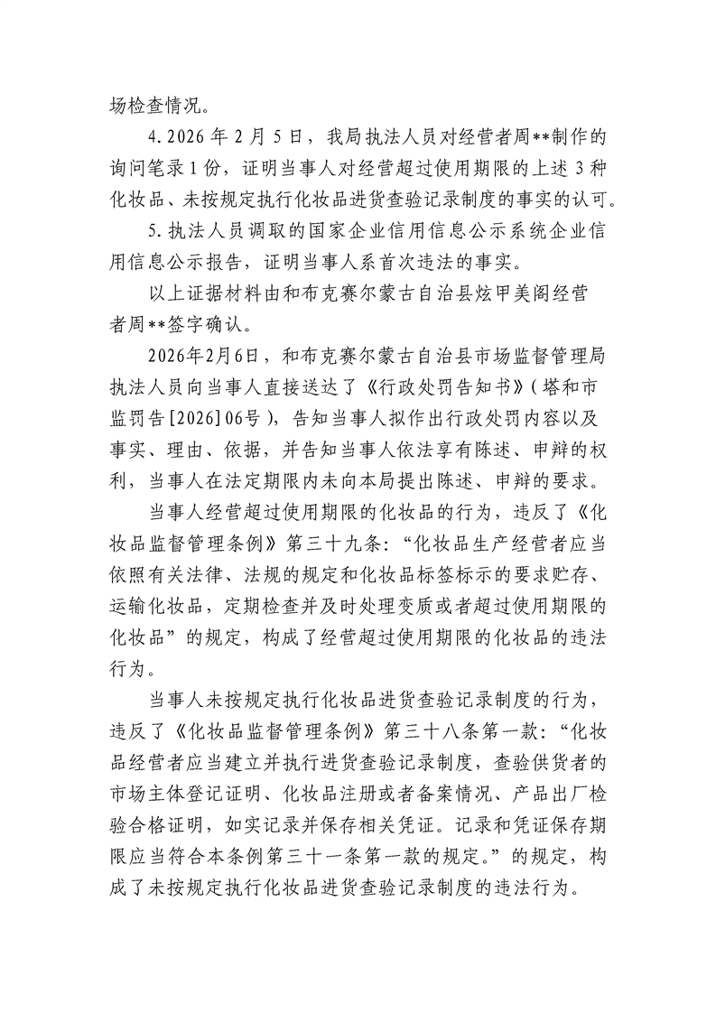 和布克赛尔蒙古自治县市场监督管理局行政处罚决定书 塔和市监处罚[2026]06号