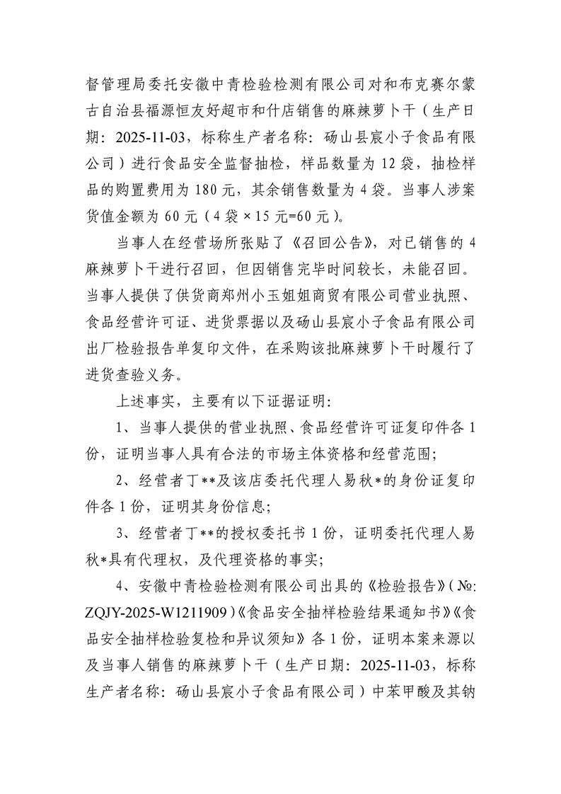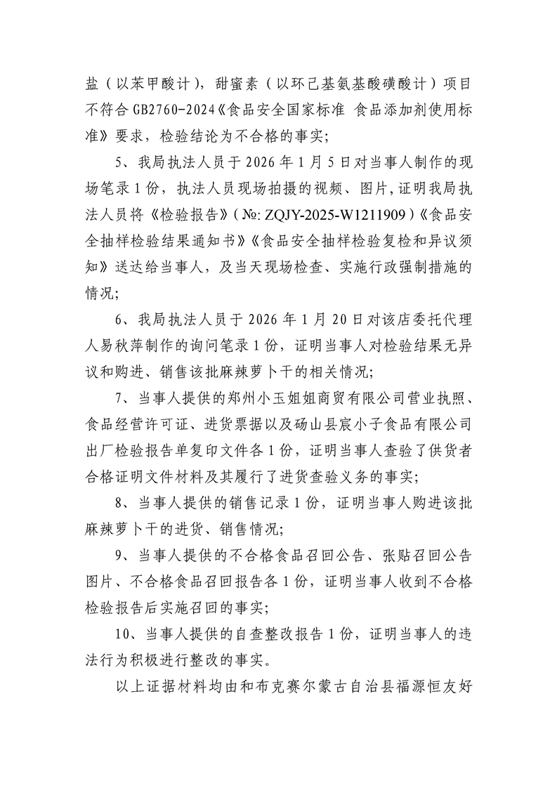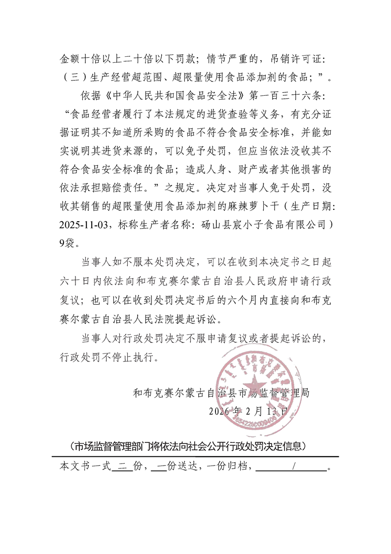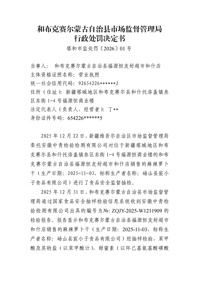 和布克赛尔蒙古自治县市场监督管理局行政处罚决定书 塔和市监处罚[2026]1号