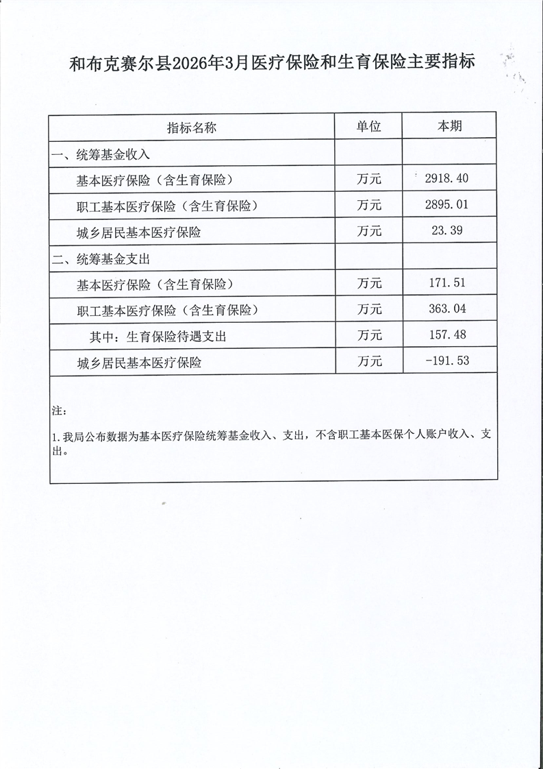 和布克赛尔县2026年3月医疗保险和生育保险主要指标