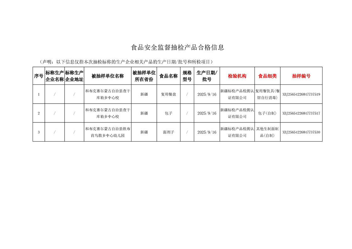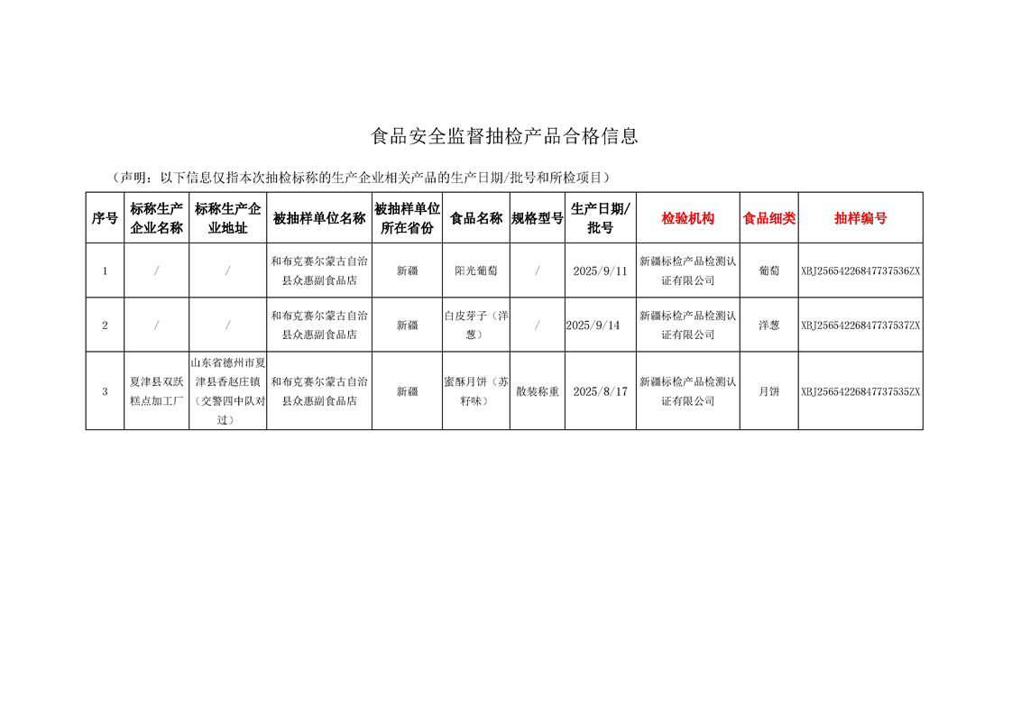 关于公布2025年第7期塔城地区和布克赛尔蒙古自治县食品监督抽检信息的公告