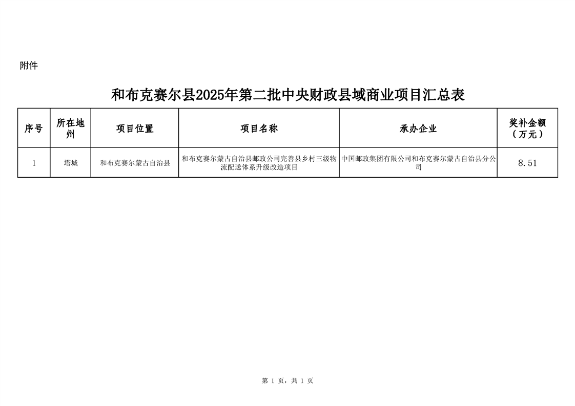 和布克赛尔县2025年第二批中央财政县域商业项目汇总表