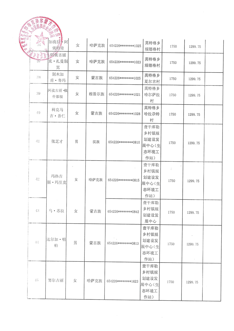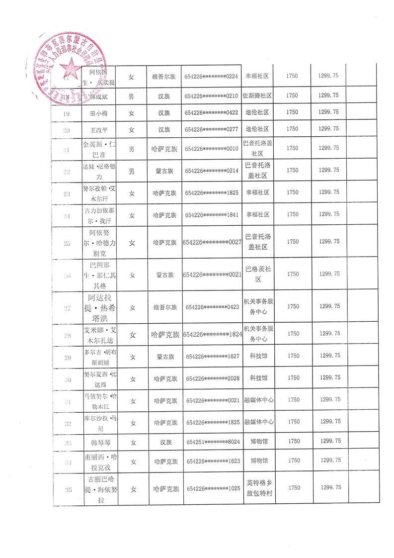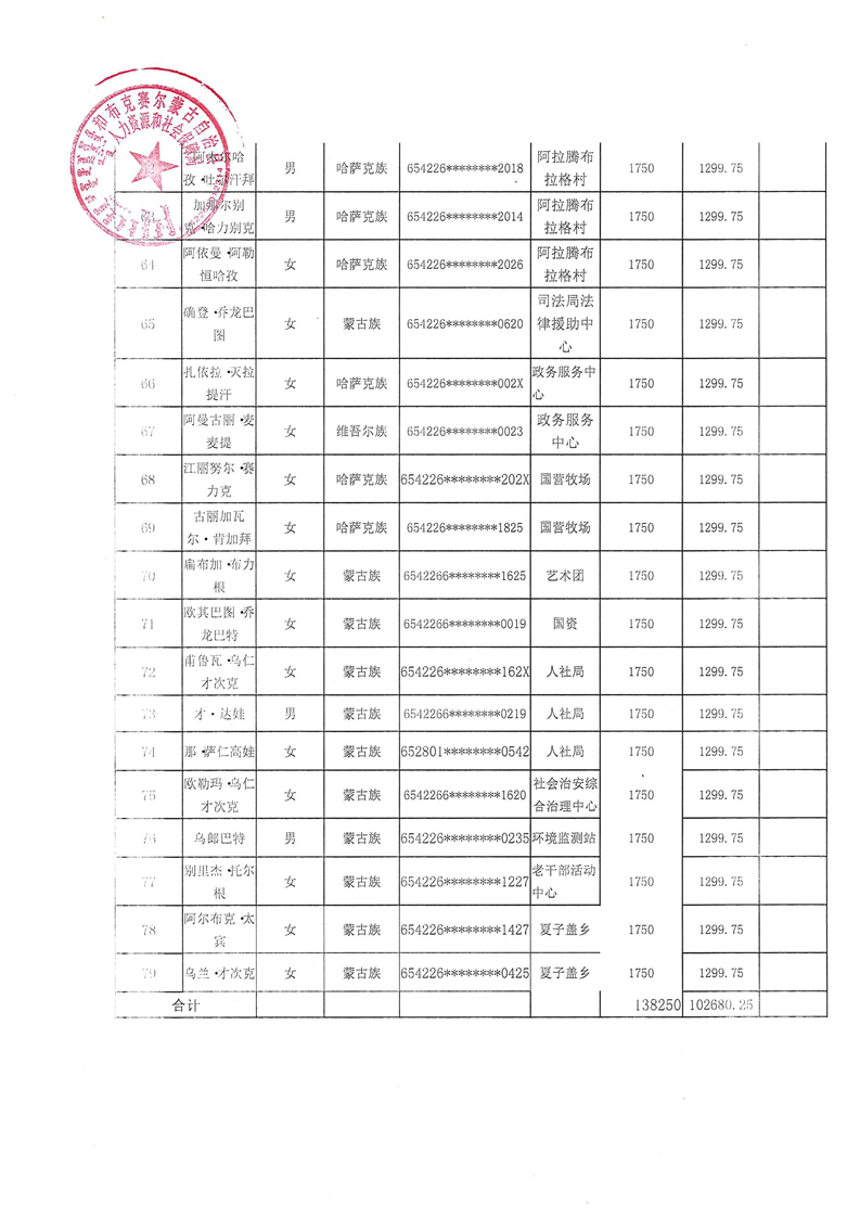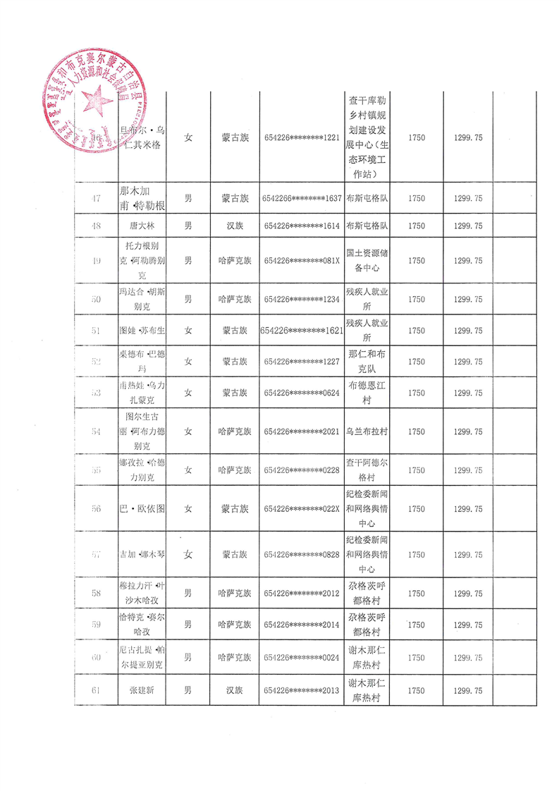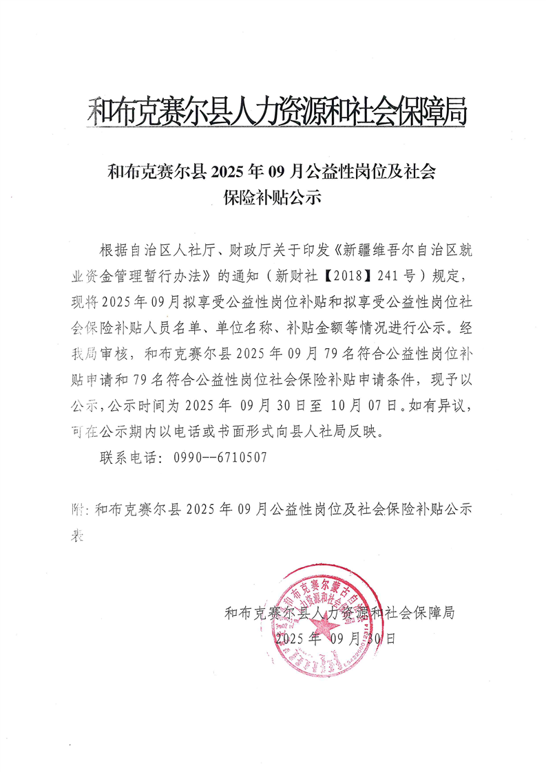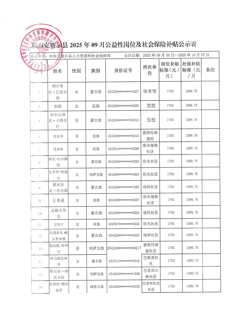 和布克赛尔县2025年9月公益性岗位及社会保险补贴公示