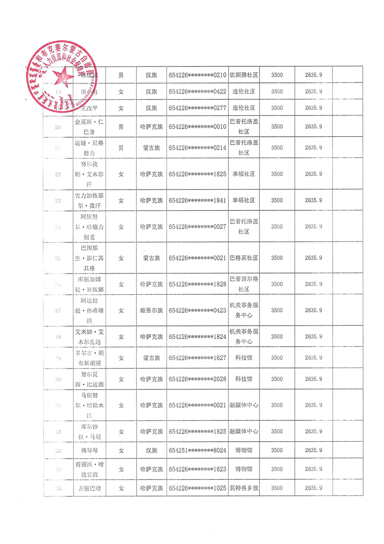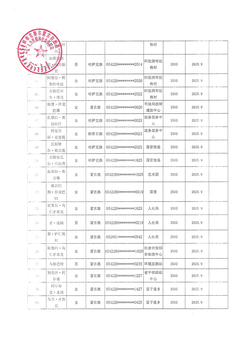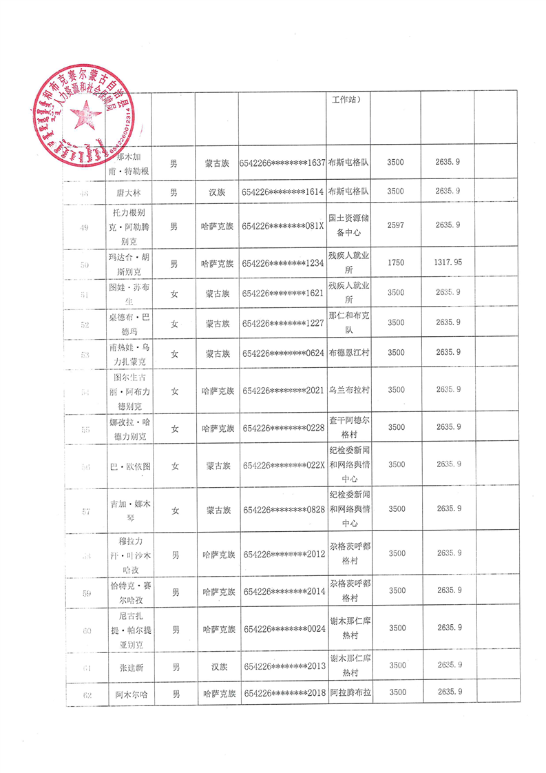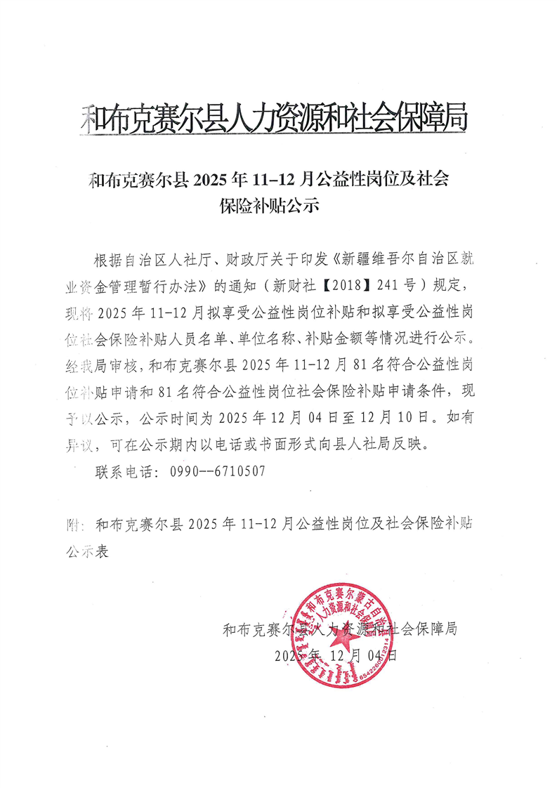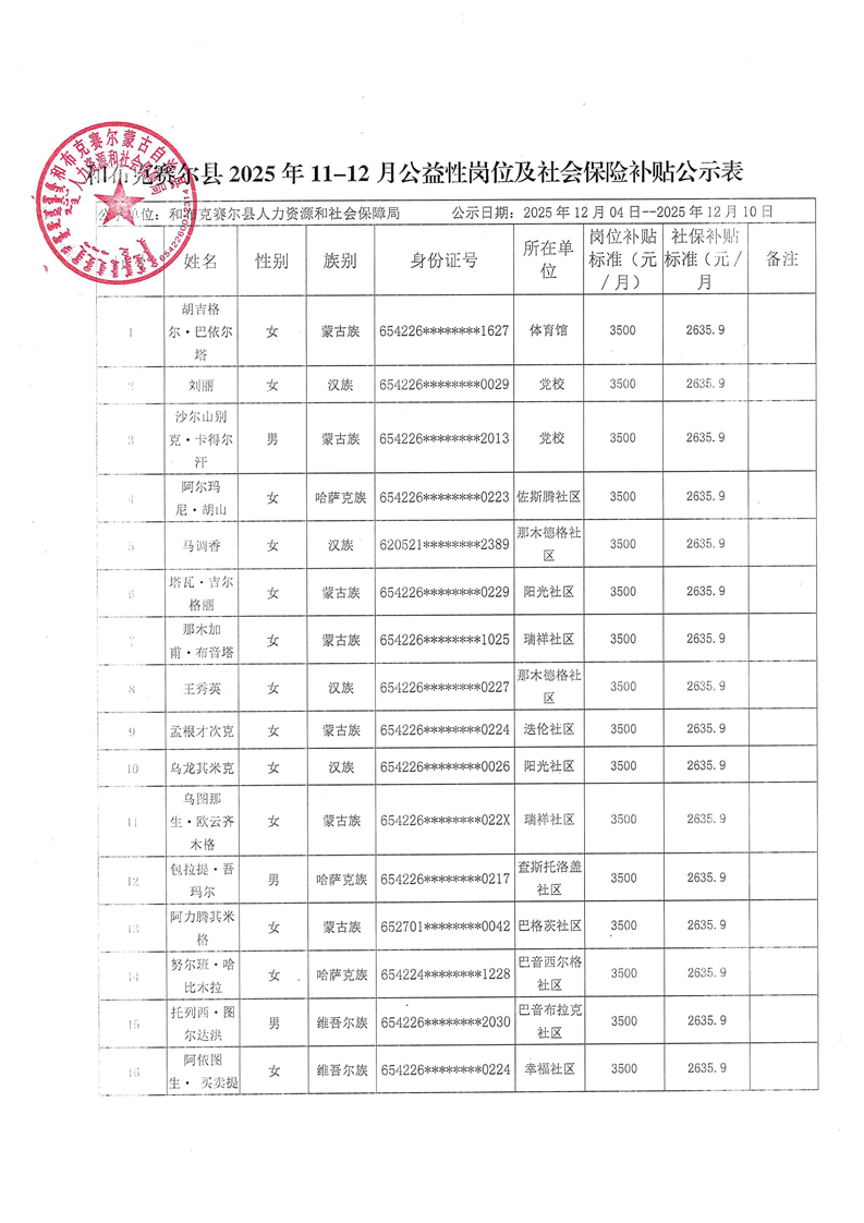 和布克赛尔县2025年11-12月公益性岗位及社会保险补贴公示