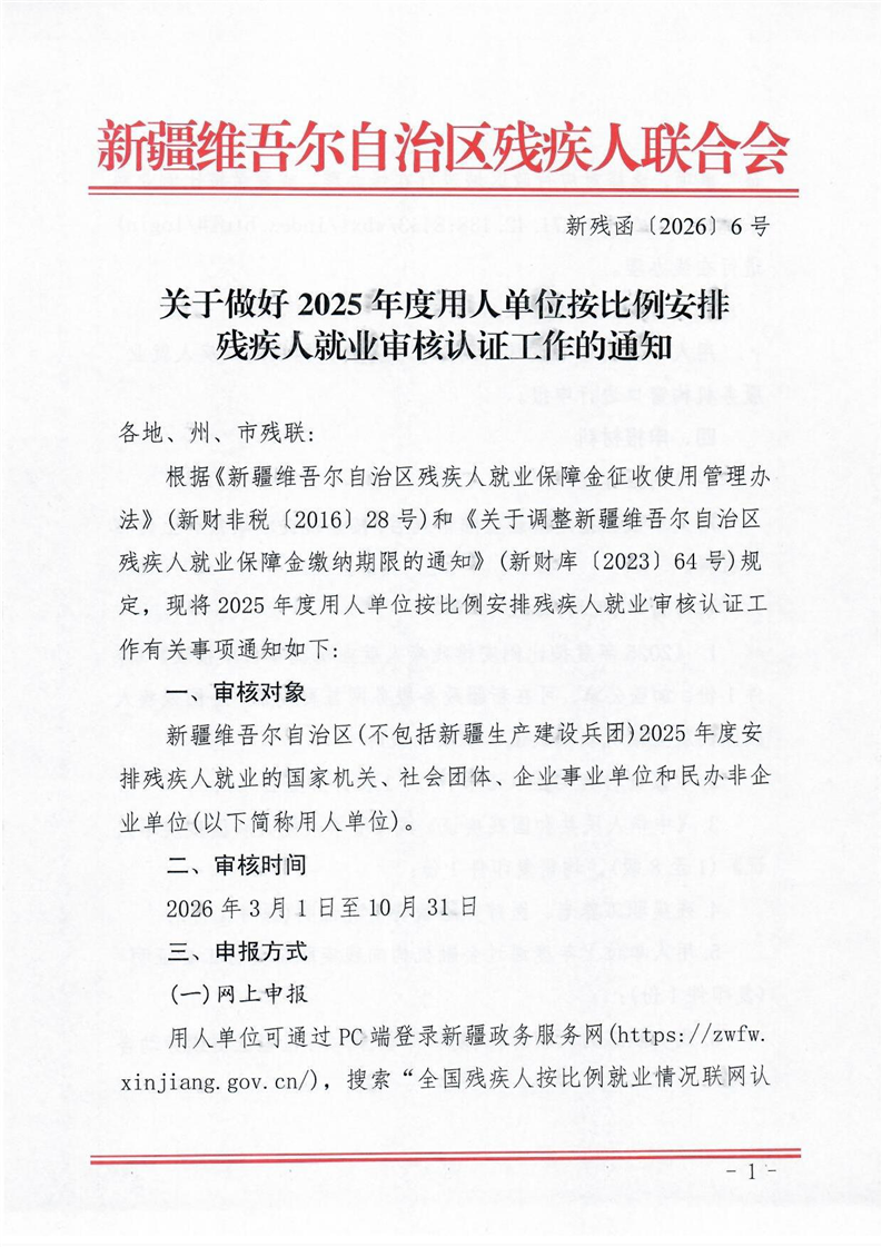 关于做好2025年度用人单位按比例安排残疾人就业审核认证工作的通知