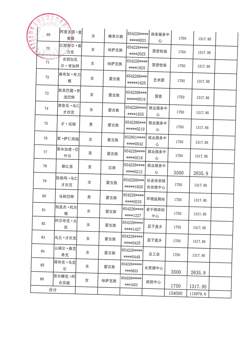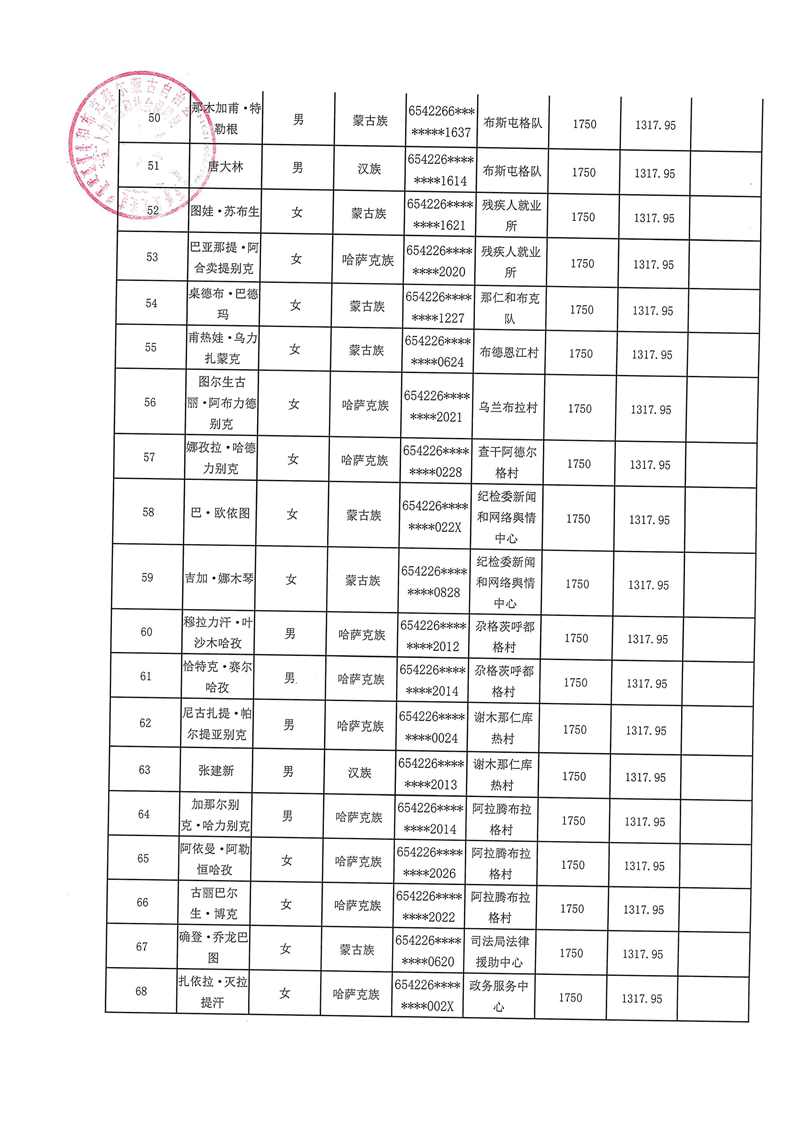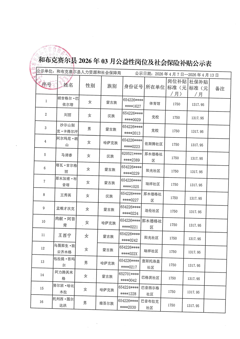 和布克赛尔县2026年3月公益性岗位及社会保险补贴公示