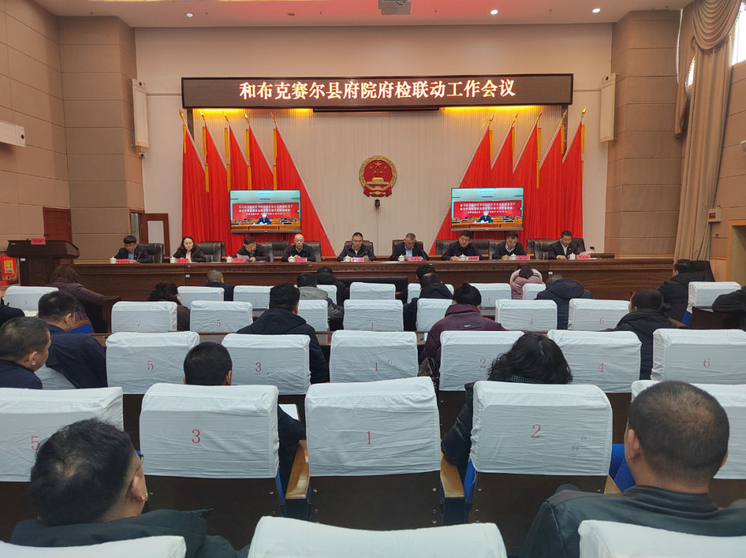 12月16日,和布克赛尔县召开府院府检联动工作会议,会议主要任务是深入学习贯彻党的二十届三中、四中全会精神和习近平法治思想,完整准确全面贯彻新时代党的治疆方略,贯彻自治区党委十届十五次全会工作要求,落实地委委员会议精神,加强行政机关、审判机关、检察机关沟通联系,总结经验交流,会商推动实现依法行政与公正司法的效能叠加,促进行政效能、司法效率、社会效果的有机统一。