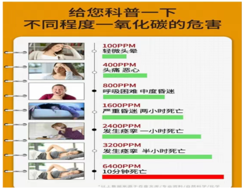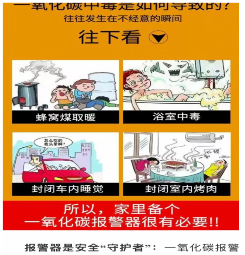 一氧化碳无色无味,正常情况下不易被察觉,人体吸入过量的一氧化碳会导致头痛头晕、恶心呕吐等症状,严重者会导致死亡。在日常生活中,如果长时间使用煤炉、火炕、燃气热水器、燃气灶,且室内通风不良,煤炭和燃气燃烧不充分,使烟雾大量进入空气中,容易产生一氧化碳,导致中毒,严重者可导致死亡。一氧化碳报警器是目前最有效且价格低廉的报警装置,能实时监控一氧化碳浓度,及时报警,让危险止步,保护一家安全。在此,和布克赛尔县人民政府倡议广大父老乡亲及时安装一氧化碳报警器,预防一氧化碳中毒事件发生。