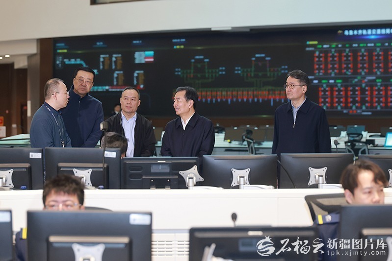 2月20日,自治区党委书记陈小江在自治区应急管理综合监测预警中心,慰问坚守岗位的干部职工,详细听取节日值班值守、应急备勤、重点领域隐患排查整治情况介绍。石榴云/新疆日报记者 崔志坚摄