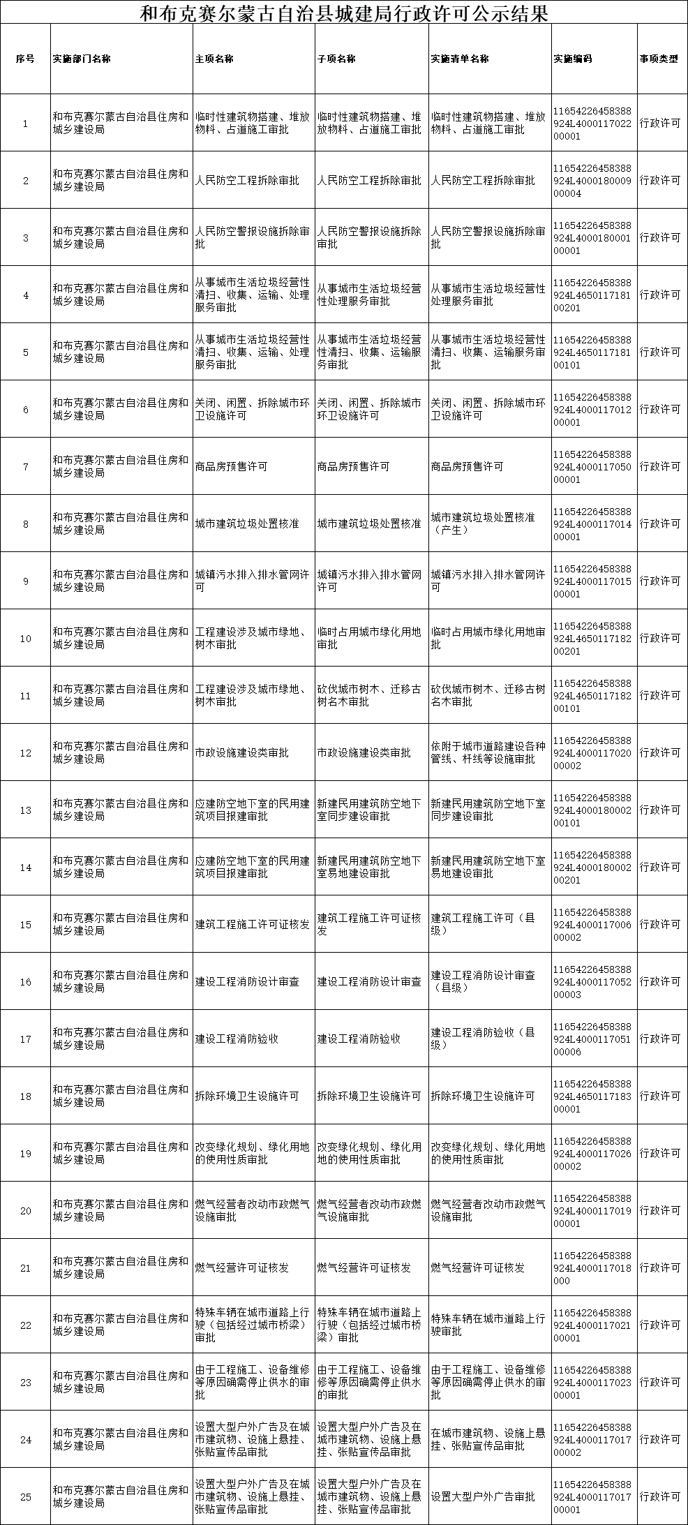 和布克赛尔蒙古自治县城建局行政许可公示结果