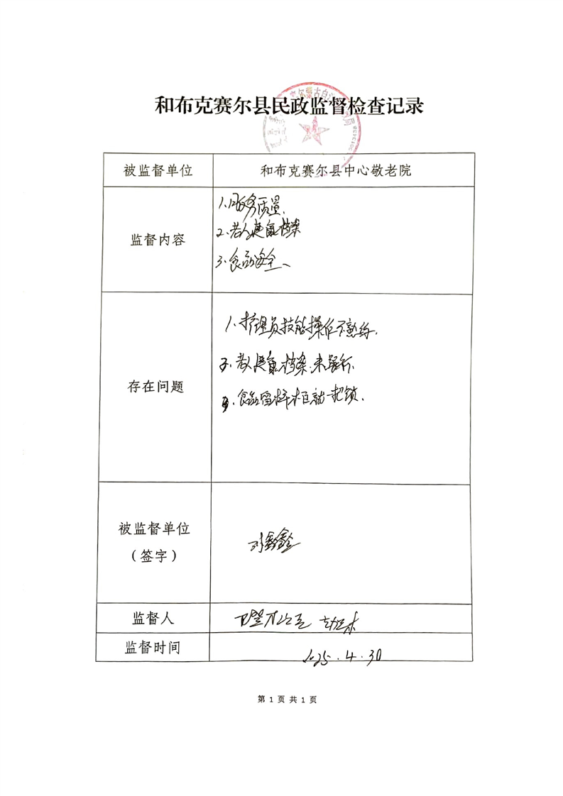 和布克赛尔县2025年养老机构监督检查信息
