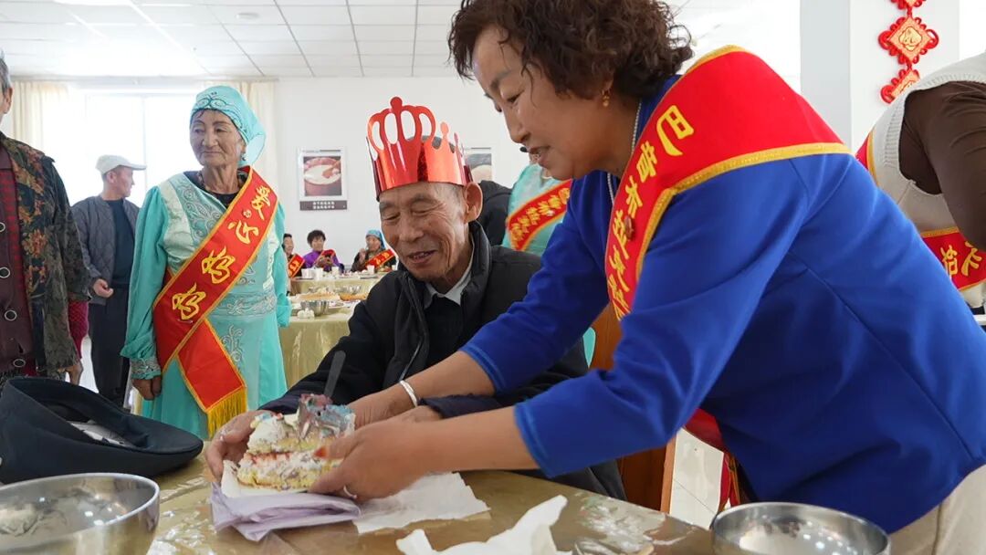 10月14日上午,和布克赛尔县和布克赛尔镇巴音布拉克社区“爱心妈妈”志愿服务队成员,带着亲手制作的点心、馓子及定制生日蛋糕走进当地敬老院,为高龄老人提前送上重阳节关怀,并为当月过生日的老人举办集体生日会。