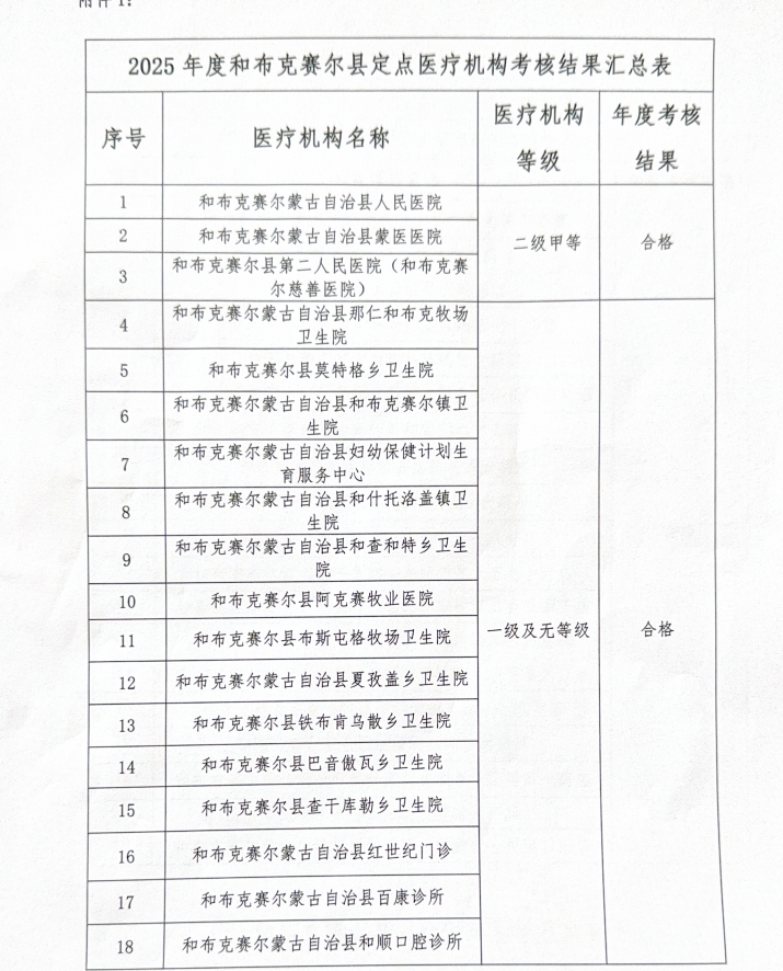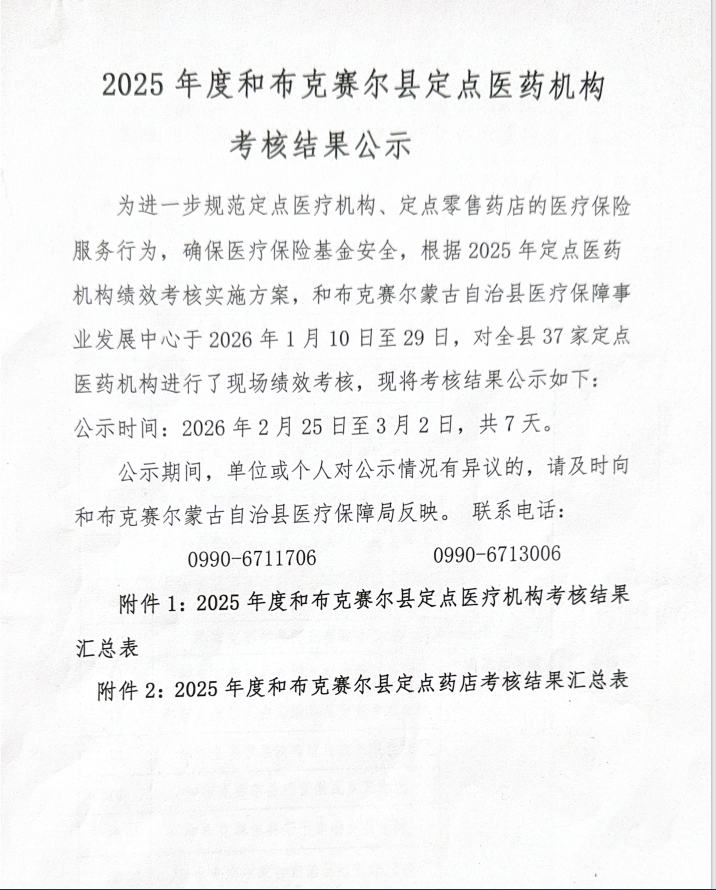 2025年度和布克赛尔县定点医药机构考核结果公示