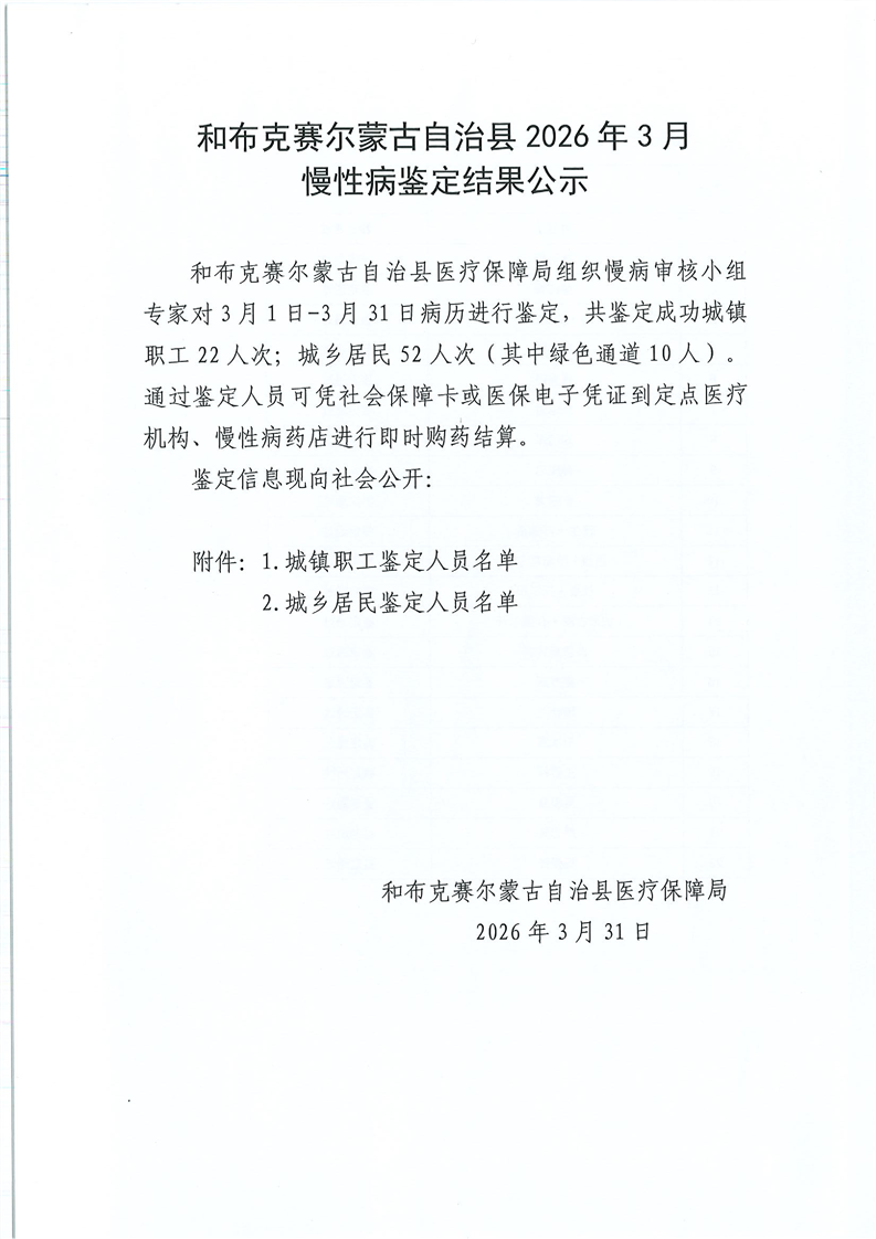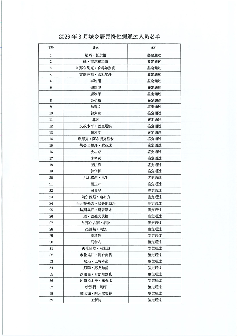 和布克赛尔蒙古自治县2026年3月慢性病鉴定结果公示