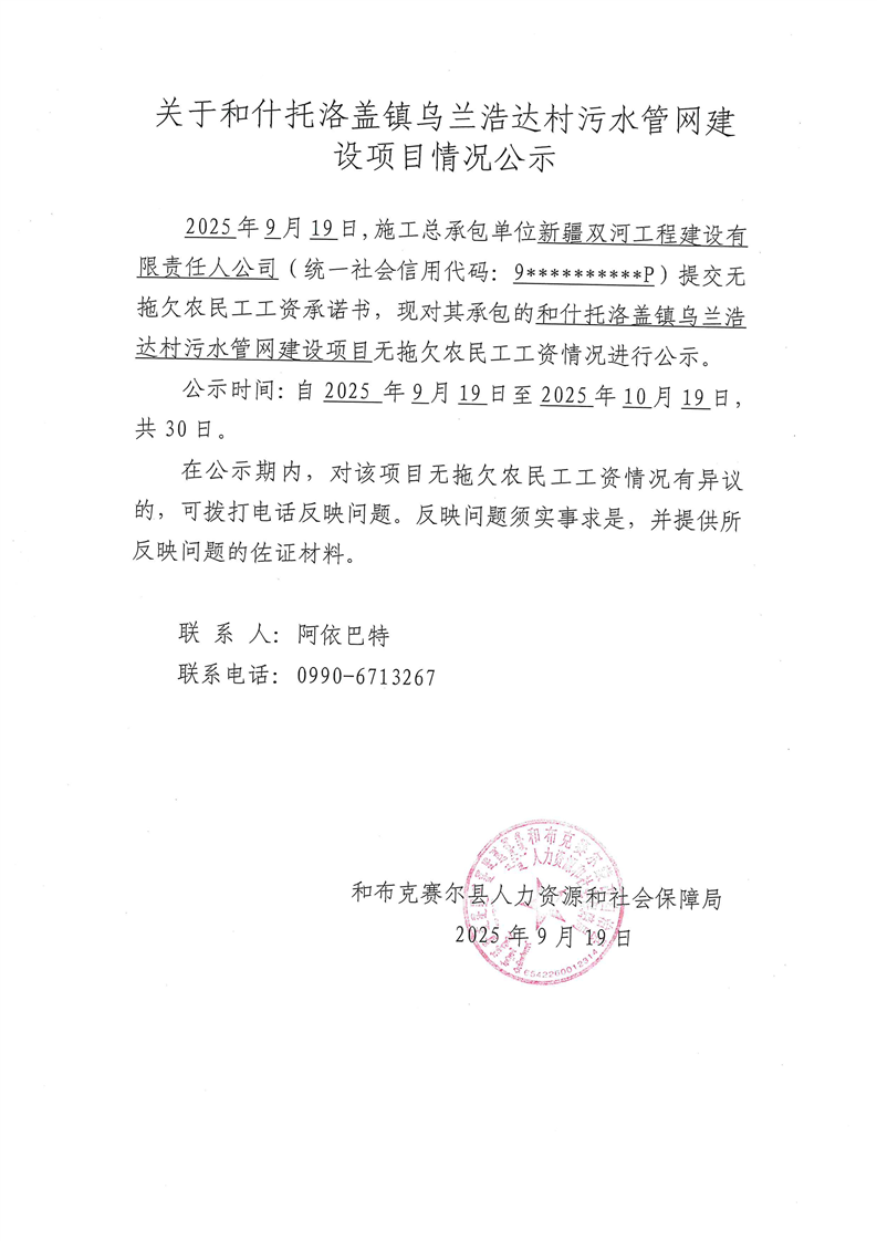 关于和什托洛盖镇乌兰浩达村污水管网建设项目情况公示